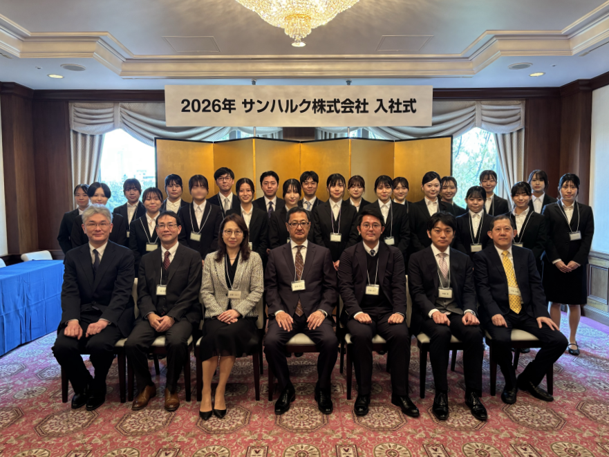 2026年サンハルク株式会社入社式を行ないました 4月1日(水)、2026年サンハルク株式会社新入社員入社式が リーガロイヤルホテル東京「クリスタルⅡ」で開催されました。 薬剤師6名、管理栄養士・栄養士10名、調剤事務5名、本部事務1名が 、サンハルク株式会社の新たな仲間として加わってくれました。新入社員の皆さんと共に、 既存スタッフも更なる成長を目指して参ります。